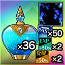 行動P全回復×36個、経験値+50%×2個、覚醒値+50%×2個、ステージパス×50個、