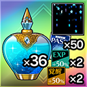 行動P全回復×36個、経験値+50%×2個、覚醒値+50%×2個、ステージパス×50個、
