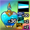 行動P全回復×36個、経験値+50%×2個、覚醒値+50%×2個、ステージパス×50個、