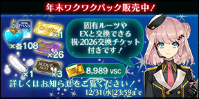 期間限定VSスカウトチケット×26枚、エフェクトスカウトチケット×3枚:8,989VSC