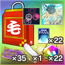 期間限定VSスカウトチケット35枚、★1スキル強化×1、★5万能ルーツ×22、ステージパス×22